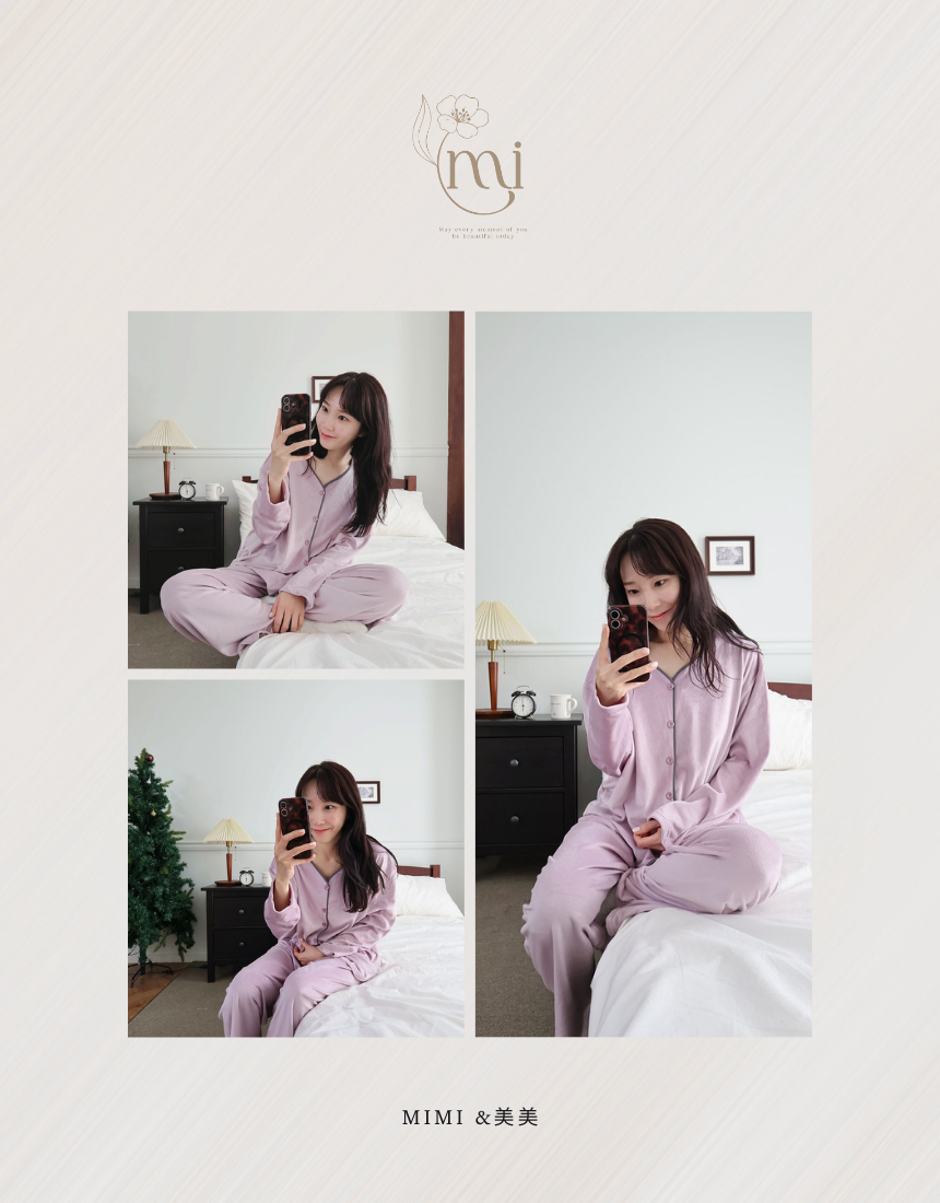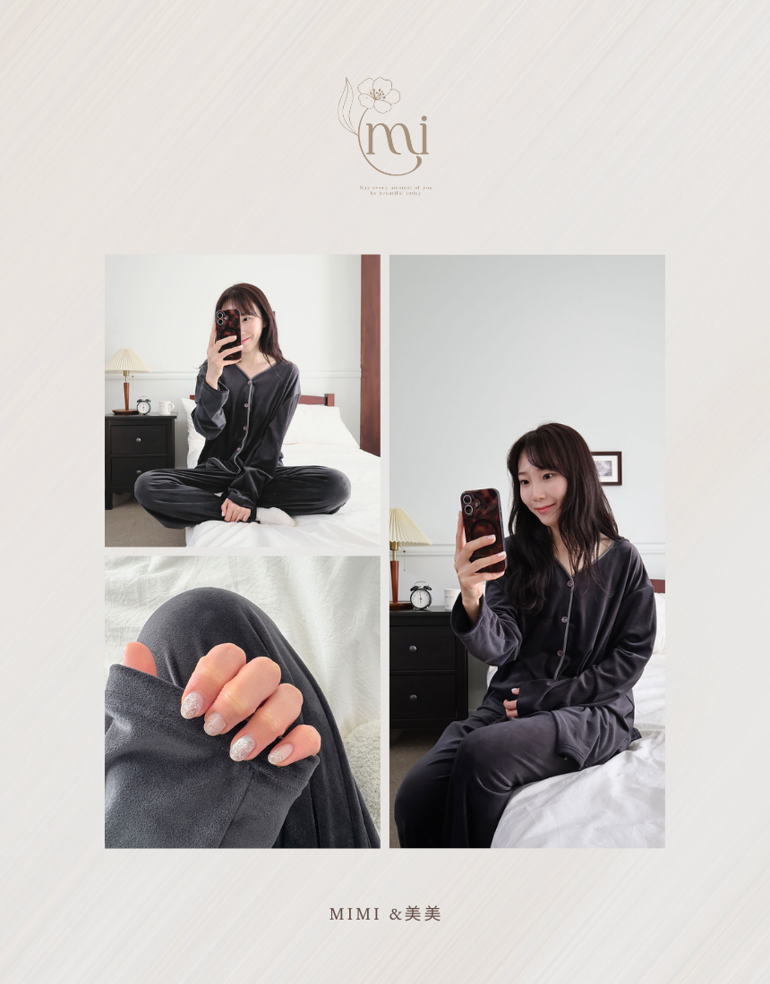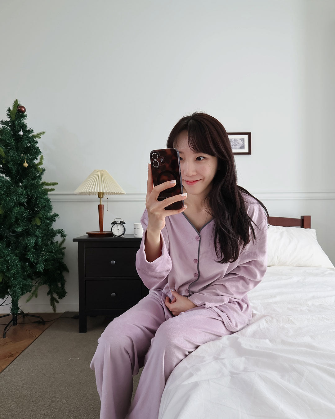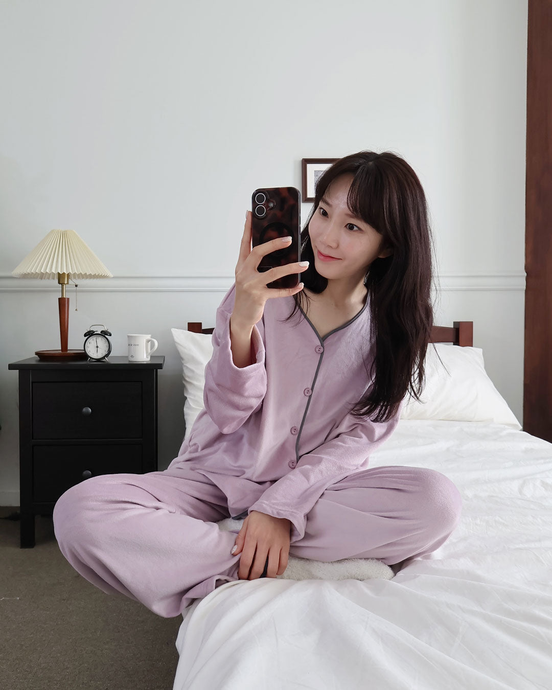 ベルベット表起毛の、なめらかでやさしい肌触りのパジャマです。