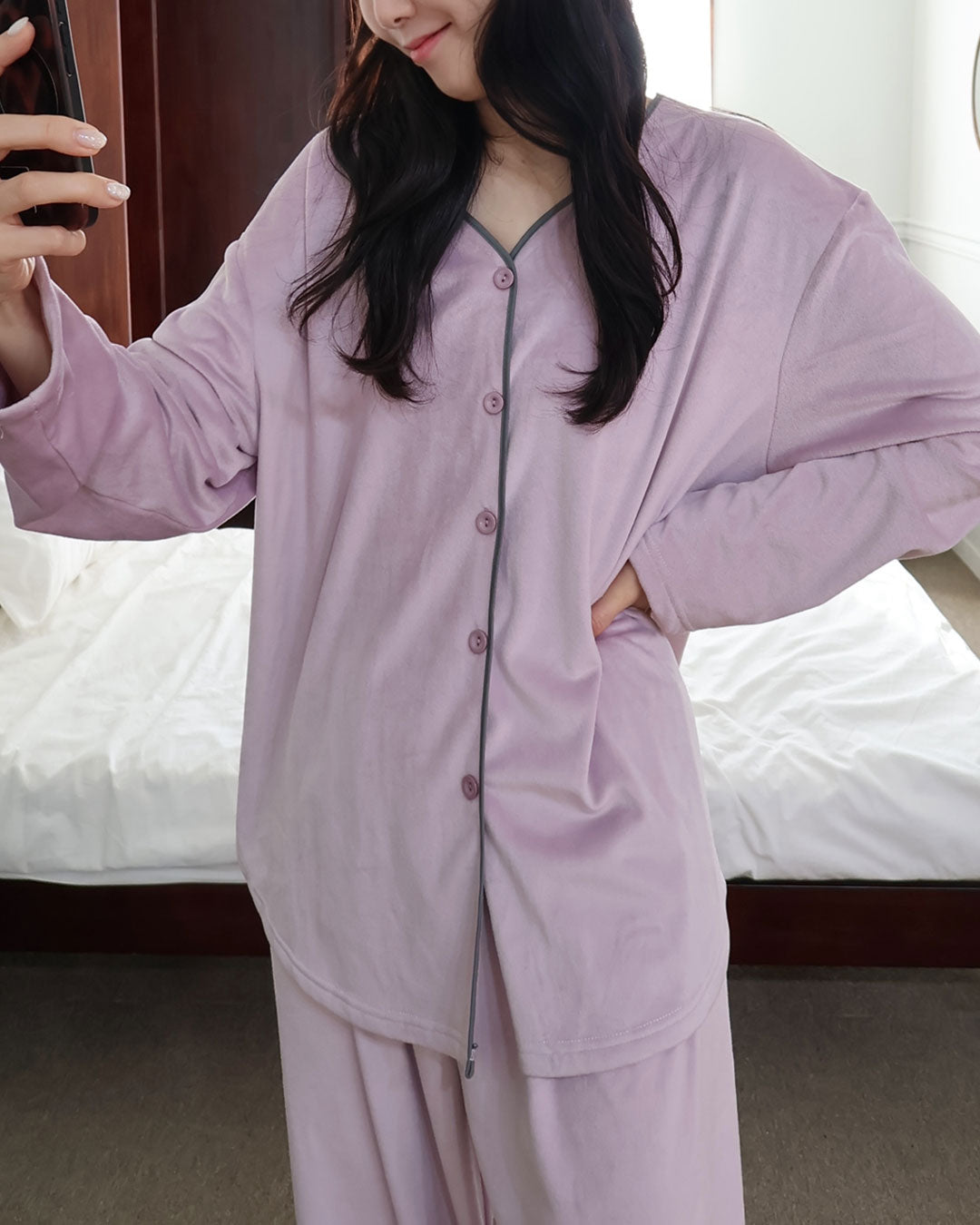 【商品名】【ベルベット表起毛】ユニセックス パジャマセット