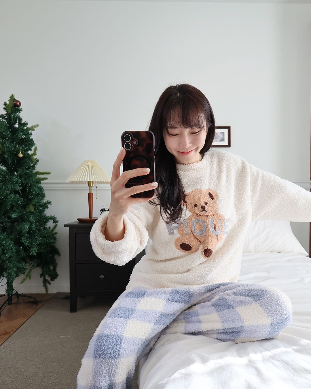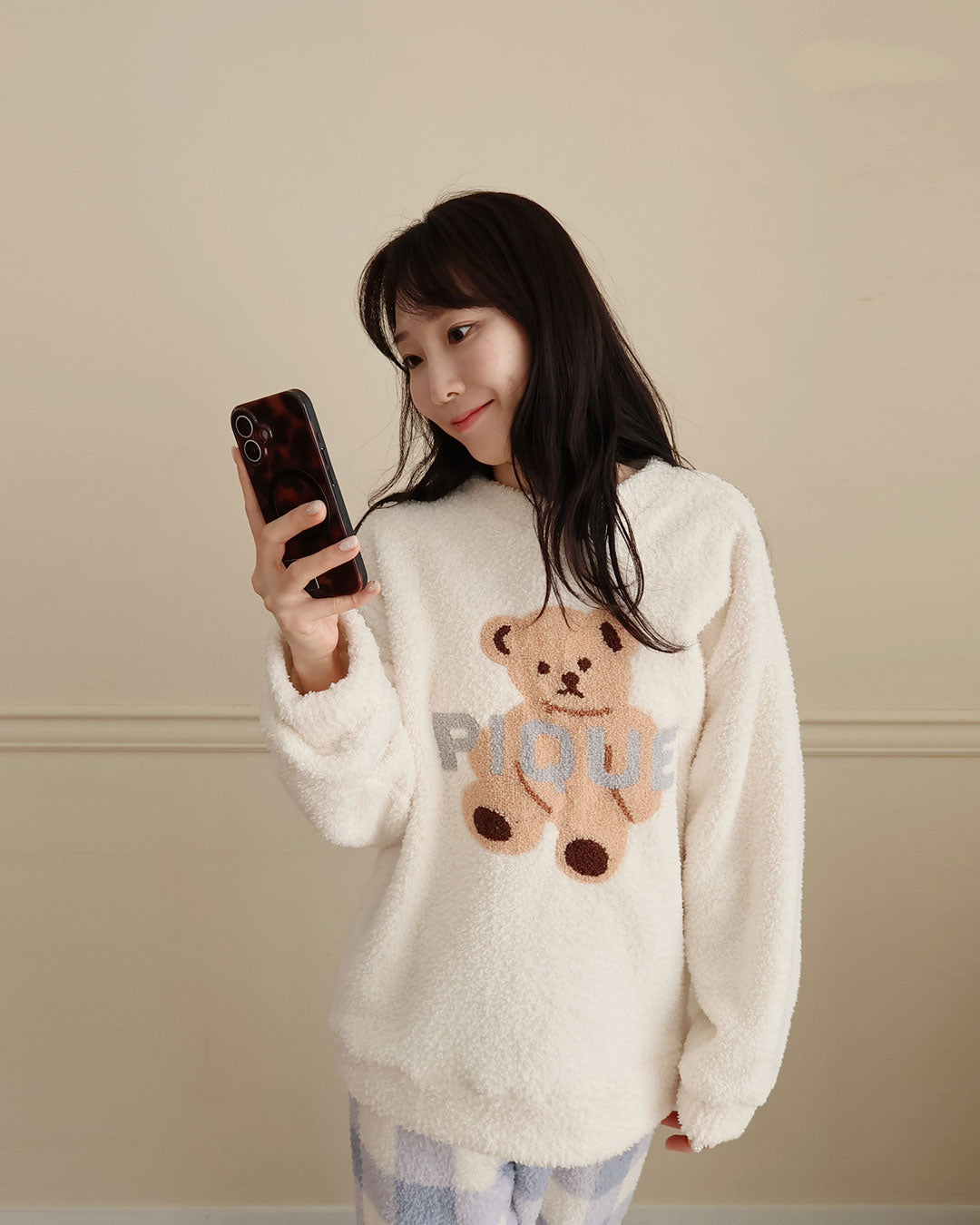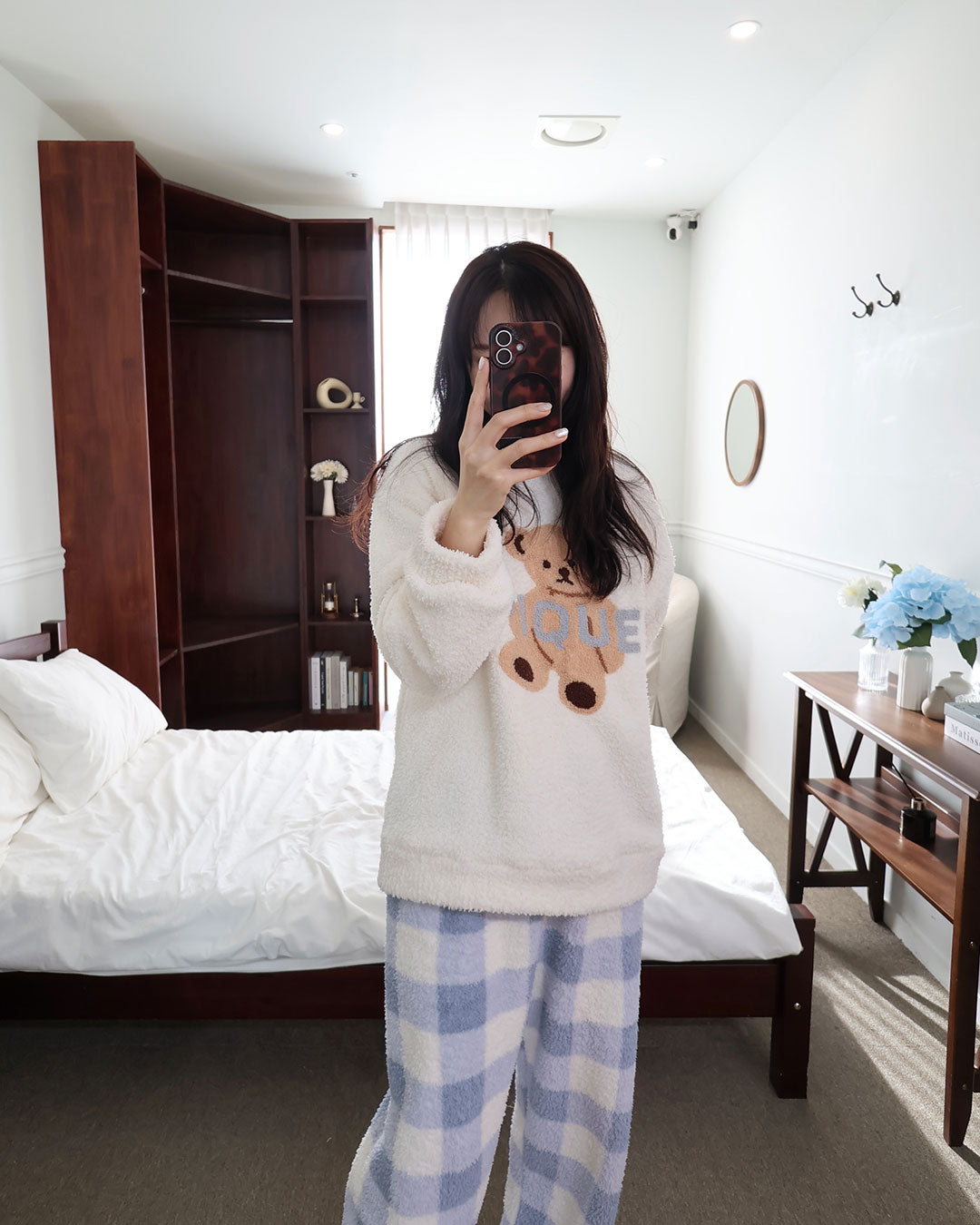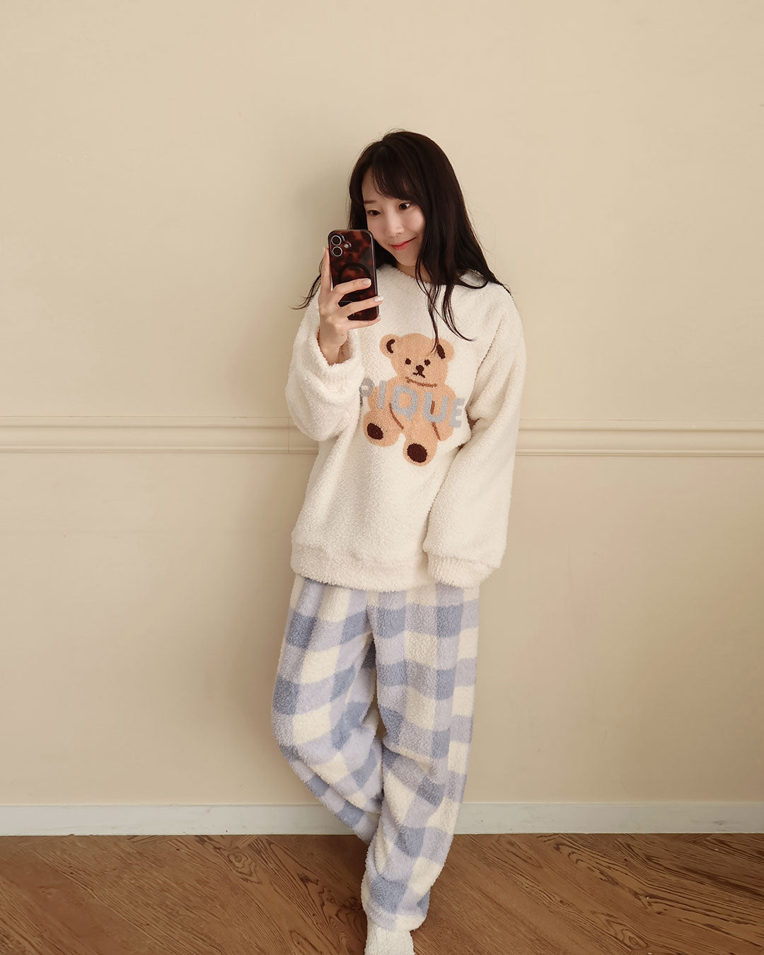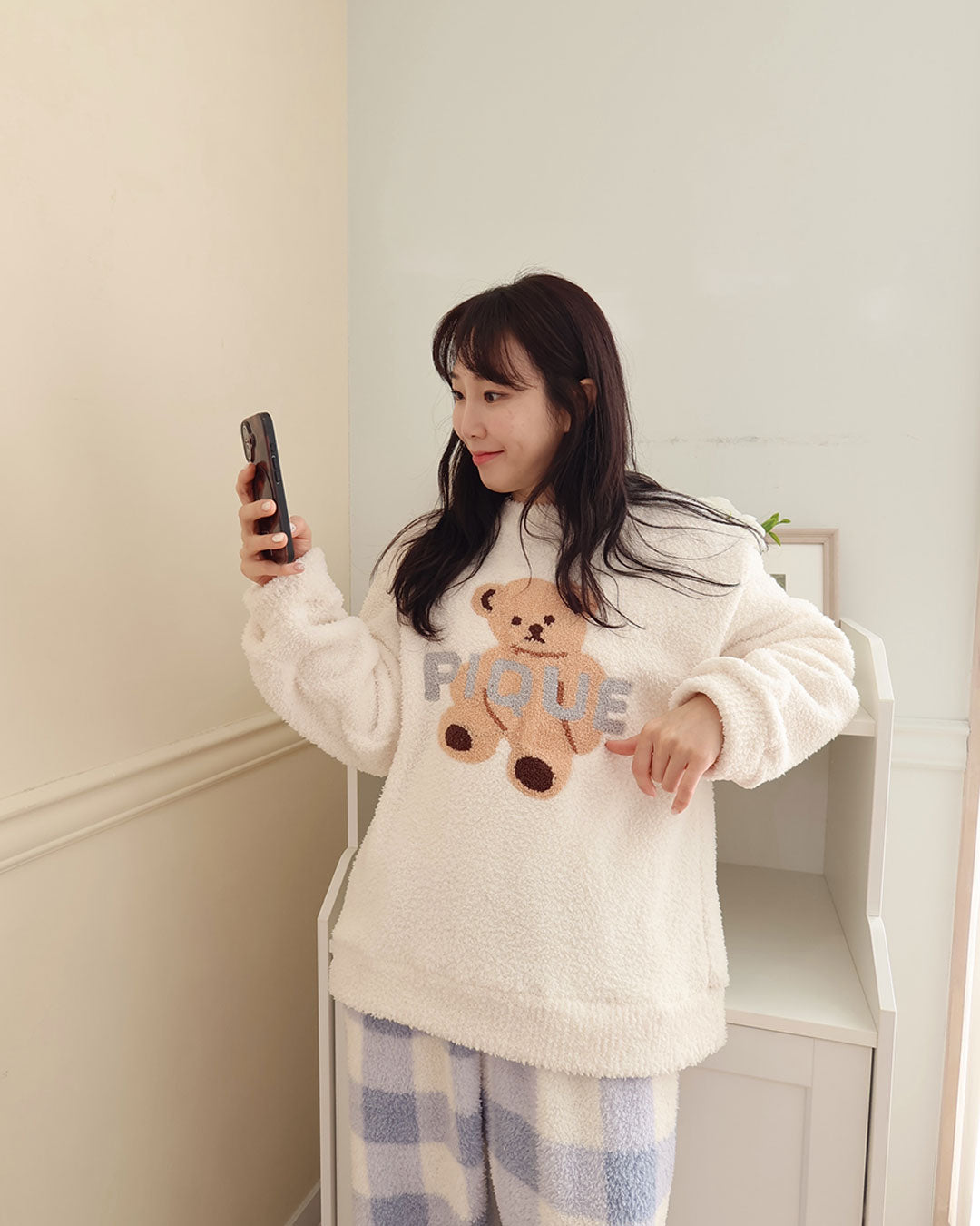 【商品名】起毛 ふわふわくまさんパジャマセット